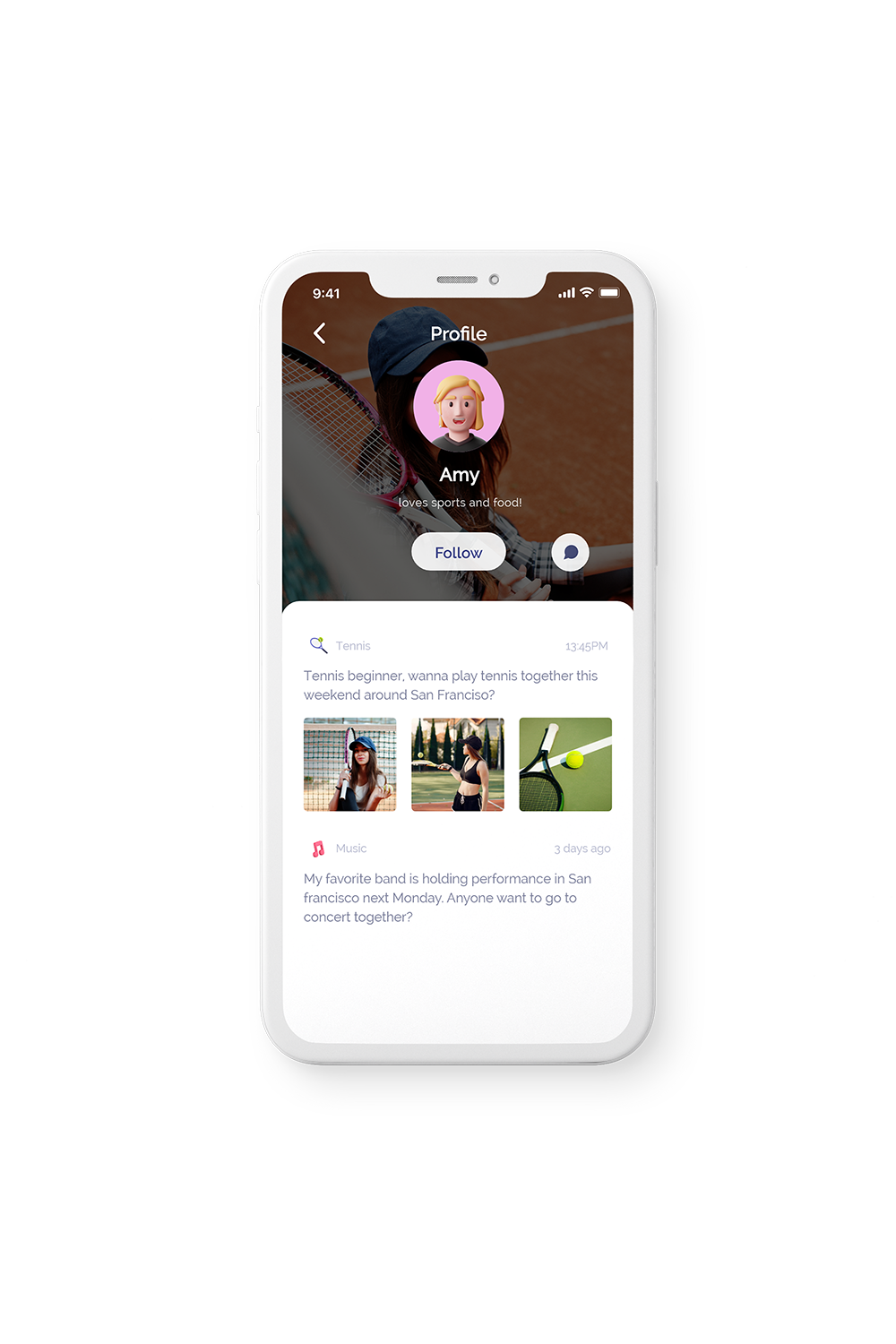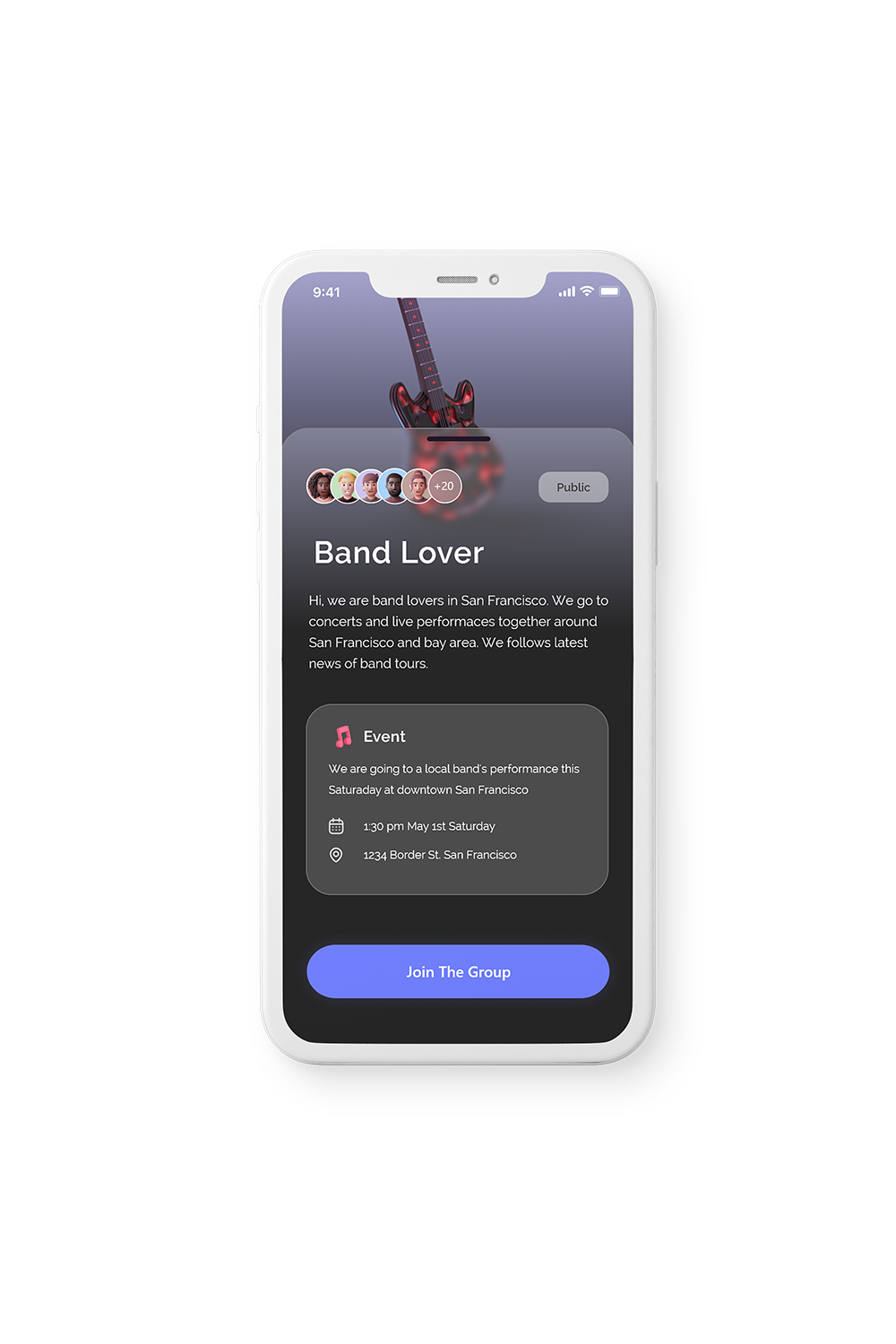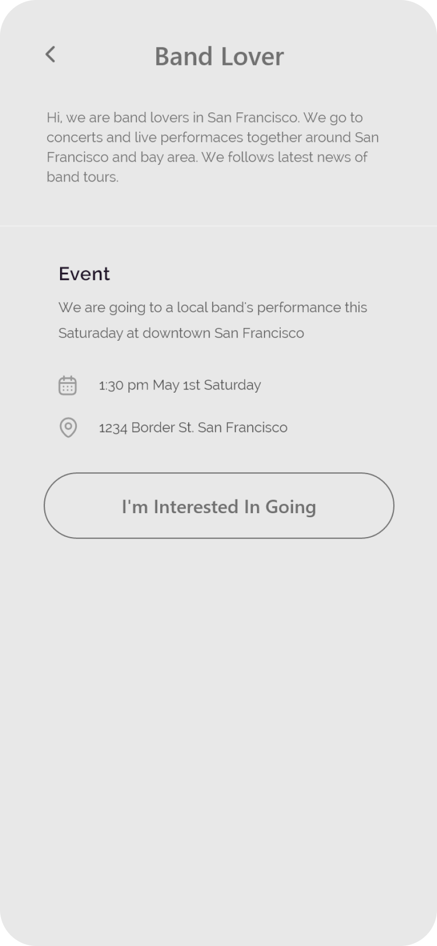 Sandy wants to find likeminded people. Sandy follows a niche band, but none of her friends in her city has that same interest as her. She wants to find people nearby interested in going to live music events together.