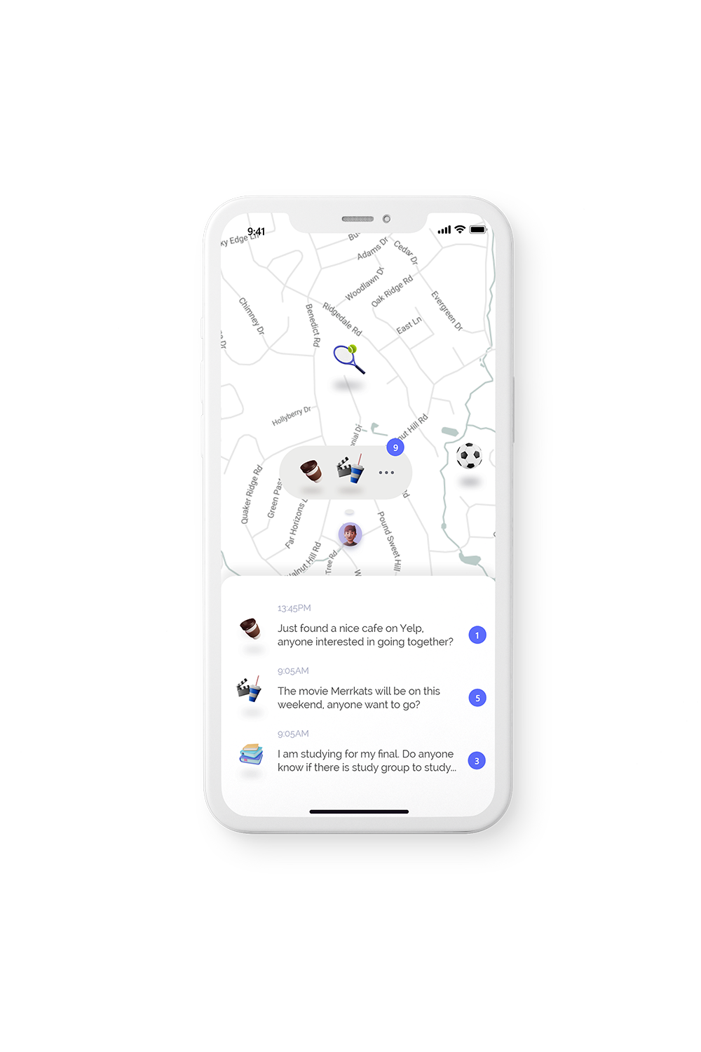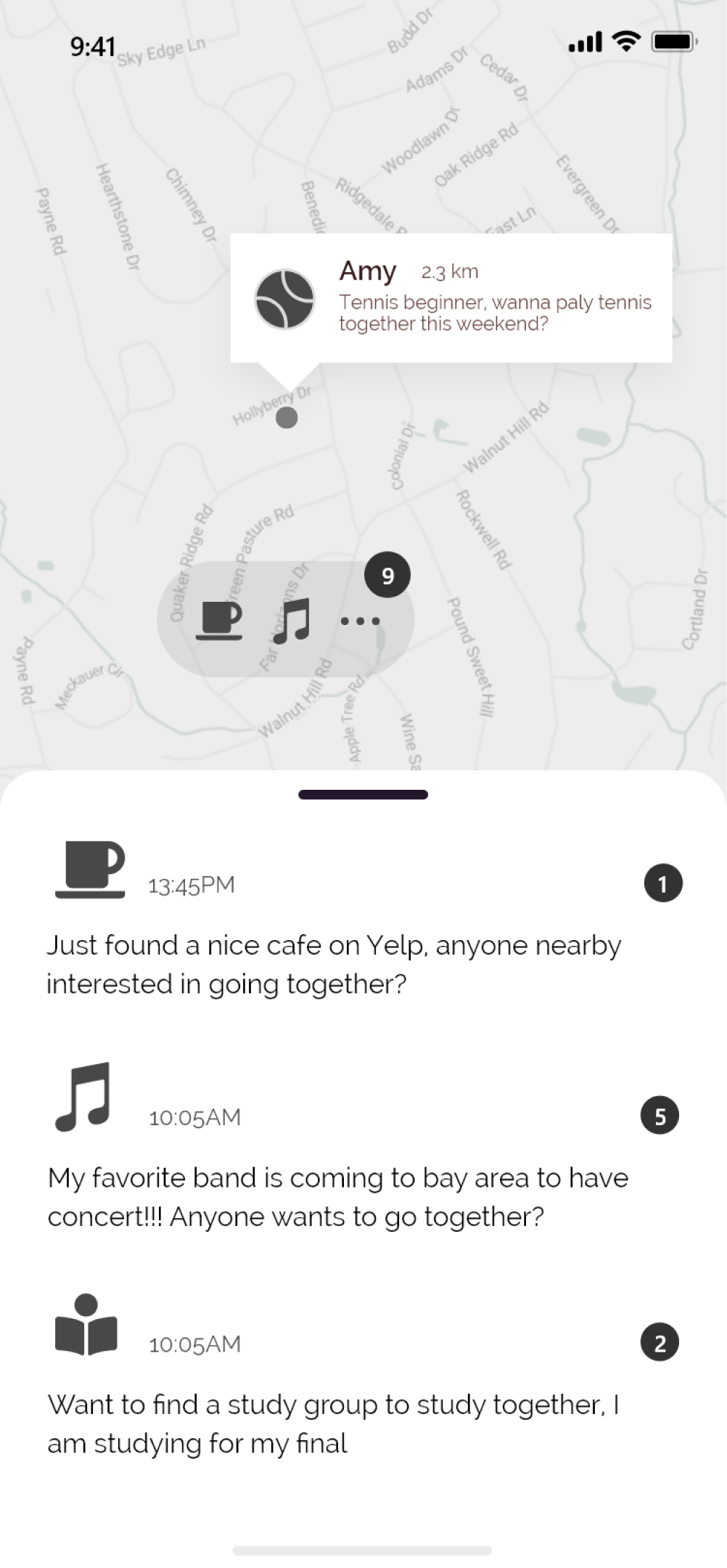 • Psost on the map to connect with nearby people